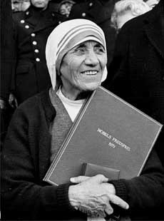 El Premio Nobel de la Paz, otorgado en 1979, la consagró internacionalmente y le abrió más puertas para expandir su mensaje por encima de credos e ideologías. Su proceso de beatificación, iniciado excepcionalmente a sólo dos años de su muerte, por iniciativa de Juan Pablo II, culminó en 2003 con una ceremonia en la plaza de San Pedro en la que al Papa, uno de sus más encendidos admiradores, se le quebró la voz por primera vez en su pontificado y fue incapaz de leer la homilía. La Madre Teresa nació como Inés Gonxha Bojaxhiu el 20 de agosto de 1910, en Skopje, capital de la actual república de Macedonia, que por entonces pertenecía a la vecina Albania. Hija de un rico empresario de la construcción, profesó como religiosa en 1928 en las Hermanas de Nuestra Señora de Loreto, en la casa madre de Rathfarnham (Irlanda). Un año después marchó a Darjeeling porque quería ejercer como misionera en la India. Desde 1929 a 1937 realizó el noviciado en la comunidad de Loreto, de Calcuta, y el 24 de mayo de ese último año hizo los votos perpetuos convirtiéndose en "esposa de Jesús para toda la eternidad". Teresa adoptó ese nombre en honor de Santa Teresita de Lisieux. El 10 de septiembre de 1946, cuando viajaba en tren desde Calcuta a Darjeeling tuvo la inspiración divina que le llevó a fundar la congregación de las Misioneras de la Caridad. Según se cuenta en un libro, la Madre Teresa vio la cara de Jesús y decidió entregarse totalmente a Cristo ya que en ese rostro encontró reflejados a los desheredados del mundo. En 1948 inauguró una escuela para niños necesitados y ese mismo año se vistió por primera vez con el sari blanco orlado de azul, el hábito de su congregación. Además de los tres votos clásicos (pobreza, castidad y obediencia), Teresa exigía a las religiosas de su orden entregarse de por vida y exclusivamente a los más pobres, sin recompensa material alguna. En 1957 fundó un centro de acogida para leprosos y en 1965, una vez que Pablo VI otorgó a la congregación la aprobación pontificia, fundó las primeras casas fuera de la India, en Caracas y Barquisimeto (Venezuela). En 1979 le concedieron el Nobel de la Paz por su labor caritativa en favor de los indigentes del mundo. En la ceremonia de entrega, en Oslo, renunció al banquete y donó todo el dinero del galardón a los pobres. Defensora ardiente de la vida, condenó el aborto y viajó por todo el mundo para concienciar a las gentes contra esa práctica. En 1987 Juan Pablo II bendijo la primera piedra de la casa que abrió dentro del Vaticano para acoger a vagabundos de Roma. La salud de Teresa, que llevaba un marcapasos desde 1983, comienza a resentirse en 1989 y, desde entonces y hasta su muerte, estuvo ingresada en numerosas ocasiones en diferentes hospitales. En 1996 publicó el libro 'Camino de sencillez', en el que recoge la doctrina religiosa que impulsó su vida de dedicación a los demás. En 'Mother Teresa: Come Be My Light', que se publica este mes de septiembre, la correspondencia personal de la monja revela la "noche oscura del alma" en que vivió casi toda su vida y que, a juicio de muchos de sus seguidores, la hace todavía más humana. Su salud empeora tras contraer la malaria y, tras varias recaídas, el 5 de septiembre de 1997 fallece de un paro cardíaco en su casa de las Misioneras en Calcuta. Fue enterrada en la capilla de la sede de su congregación el 10 de septiembre. En entierro fue un acontecimiento nacional en India, donde millones de desheredados acompañaron al cadáver por las calles de Calcuta y al funeral acudieron personalidades de todo el mundo, entre ellas la reina Sofía de España. "De sangre soy albanesa; de ciudadanía, india; por fe, soy católica; por vocación, pertenezco al mundo, y por corazón, pertenezco totalmente al Corazón de Jesús", afirmaba Teresa. Su congregación, dirigida ahora por la hermana Nirmala, cuenta con 4.500 religiosas de más de ochenta nacionalidades, distribuidas en 133 países, donde tienen 710 casas. También hay hermanos misioneros de la caridad, padres misioneros, misioneros laicos, colaboradores y voluntarios. La monja, "infatigable benefactora de la humanidad", como la definió Juan Pablo II, fue proclamada beata en Roma tras comprobarse canónicamente su primer milagro: la curación de una mujer india de religión animista, Mónica Bersa, de 34 años, que padecía un tumor en el abdomen. A la mujer, devota de Teresa, le colocaron en la zona enferma una medalla que había pertenecido a la monja, el 5 de septiembre de 1998, un año exacto después de su muerte, y su saluda mejoró a partir de ese momento. La Iglesia tiene abierto expediente de canonización.