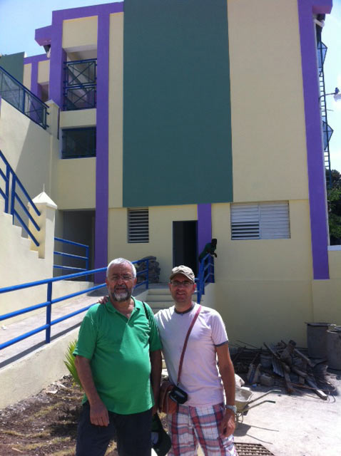 Su primera reacción fue sorprenderse de lo mejorado que está Puerto Príncipe. El había venido a los diez meses del terremoto, cuando aún no se había desescombrado. Así que su alegría fue ganando enteros. Nada más llegar a la sede montó su equipo y salimos hacia la nueva escuela san Gerardo para comenzar a filmar. Entre unas cosas y otras llegamos pasadas las once. Nos esperaban Kenol y Gilbert, con los que fuimos a grabar.