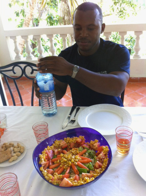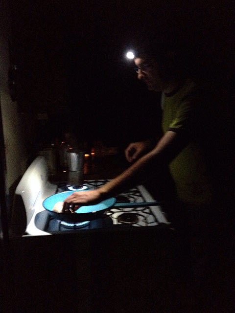 Mientras duró la tormenta, Alberto González preparó una ensalada que fue nuestra cena.