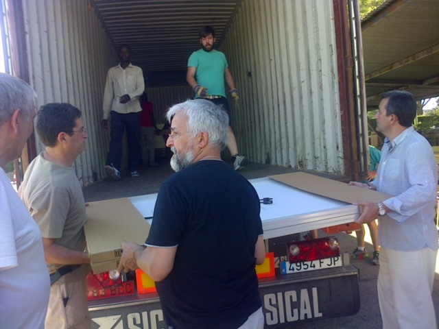 Los módulos se enviaron en el contenedor que se cargó en Madrid el 20 de julio, 2015. Tiempo estimado de transporte es entre dos o tres meses hasta su llegada a destino. La realización de las instalaciones FV se hará una vez esté terminada la construcción de las aulas del orfanato, es decir, finales de septiembre u octubre 2015.