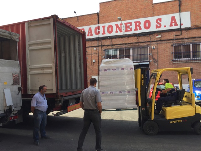 Como respuesta a la petición que se nos hizo desde Haití, enviamos el día 3 de agosto, 2018, veinticuatro mil kilos de comida no perecedera en un contenedor de la empresa Tránsitos del Caribe. El Grupo Racionero, de Humanes-Madrid, nos ha prestado sus locales para hacer posible que la carga se efectúe en un mismo lugar. La empresa Aguas Cazorla nos ha regalado los cuatro mil kilos de leche. En total van: