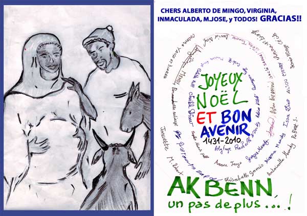 Me vine [desde Dakar] a Taizé después de haber recogido el inmenso paquete de AyC. Aún estáis atentos a las cosas bellas, buenas y deliciosas! Se agradece. Como se agradece vuestra cercanía. Y se agradecen tantas cosas que nos han ayudado y alentado. QUé bueno que lo empezado pueda continuar! Todo el afecto de AK BENN para AyC, y mi abrazo fuerte. Cristi